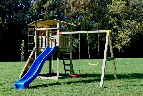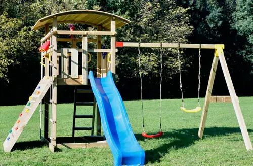 Előre összeszerelt játszótorony hintamodullal