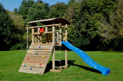 A KAMY Mammut Torony a KAMY család legnagyobb őrtornya. Ha a kertben helyet keresel egy igazi kalandparknak, a Mammut az, amit keresel: széles mászófal, kötéllétra, és a hintamodul mind benne van. A gyerekek nem fogják abbahagyni a játékot!
