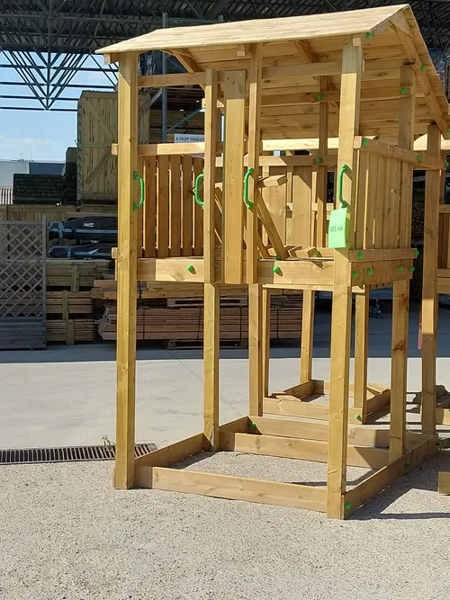 Igazi őrtorony a kert közepén A KAMY Tatu Torony impozáns megjelenésével és 150 cm-es emelvénymagasságával igazi őrtorony-élményt nyújt. A nagy homokozó keret és a hintamodul csatlakozás teszi a család kedvencévé. Miért a Tatu Torony? - 150 cm emelvénymagasság – igazi őrtorony 3-14 éves gyerekeknek - 120×150 cm homokozó keret – tágas játszótér a torony alatt - Hintamodul csatlakoztatható – bővíthető hintával - 9×9 cm oszlopok – masszív, prémium szerkezet - Tanalith E autokláv – 15+ év élettartam